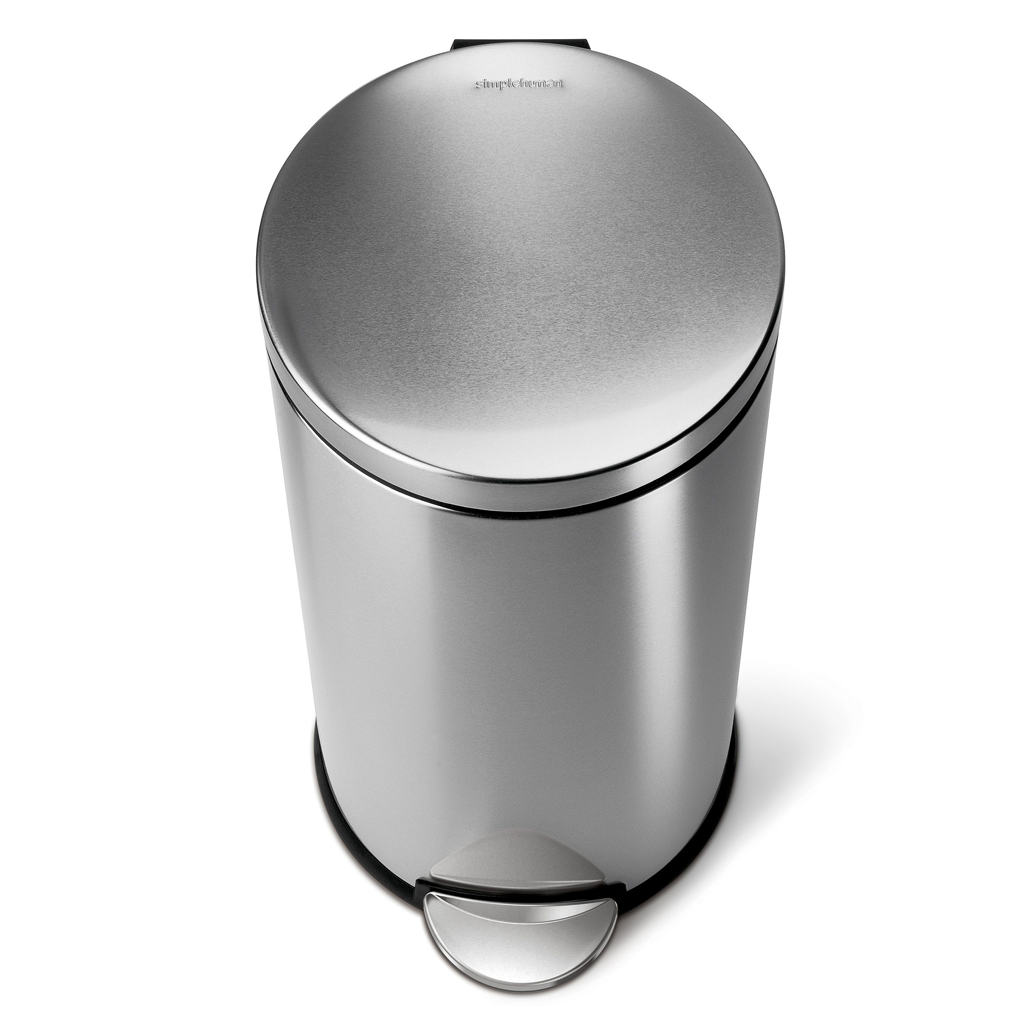This round pedal bin enhances your trash experience with its extra-strong and durable custom-fit liners. Its classic round shape fits seamlessly in any space, while the strong steel pedal is engineered to last for years. The silent close lid, patented lid shox technology, ensures a quiet close without any banging noises, and the slim profile hinge allows placement closer to walls. With a stay-open lid feature, it’s perfect for longer chores, and the fingerprint-proof finish keeps the stainless steel shiny.